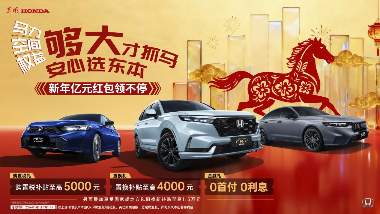 隨著馬年新春的日益臨近,不少消費者紛紛將購車或換車提上日程,希望為新年增添一份實實在在的喜悅與便利。為了回應(yīng)這份期待,2026年1月1日,東風(fēng)本田發(fā)布了“安心選東本,新年億元紅包領(lǐng)不?!钡膬?yōu)惠活動,截止2月15日前,購車用戶可享受多重好禮。與此同時,2026年中國車谷品牌運營中心汽車消費券活動也同步啟動。這意味著,購買東風(fēng)本田旗下的部分車型,即可享受到品牌新春鉅惠,與地方政策補貼的雙重禮遇。