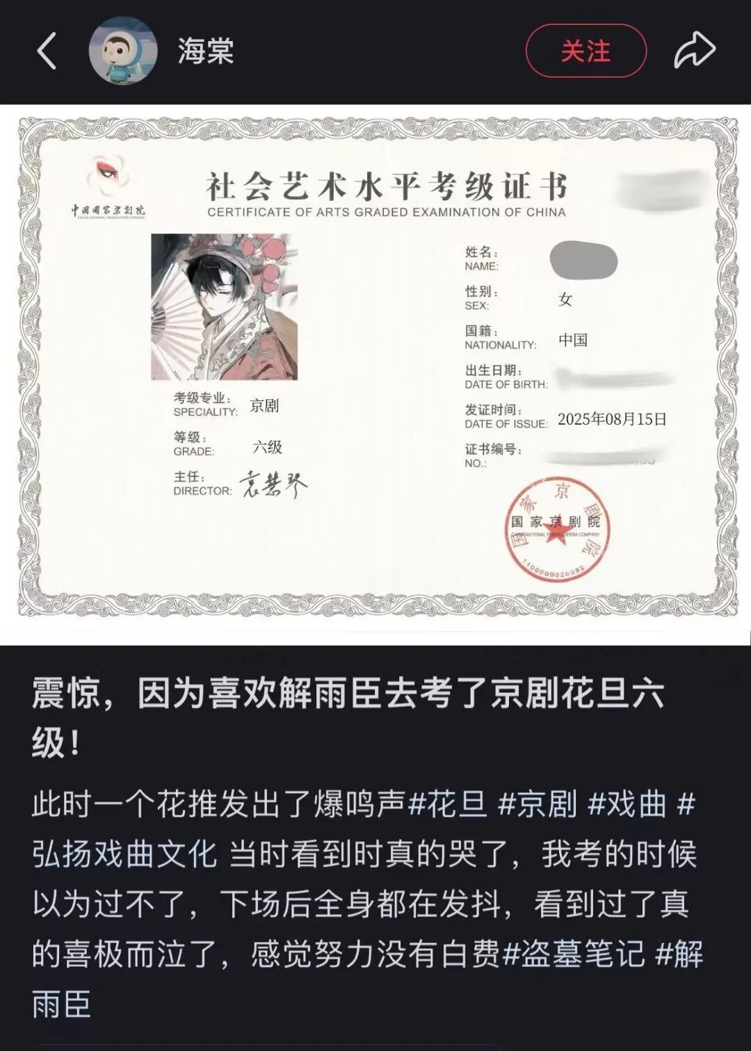為演繹小說中的名角“解雨臣”去考京劇級,為化身電影《哪吒》中的“敖丙”去考潛水執(zhí)照,甚至醫(yī)學(xué)生直接亮出醫(yī)師證來cos醫(yī)生角色……