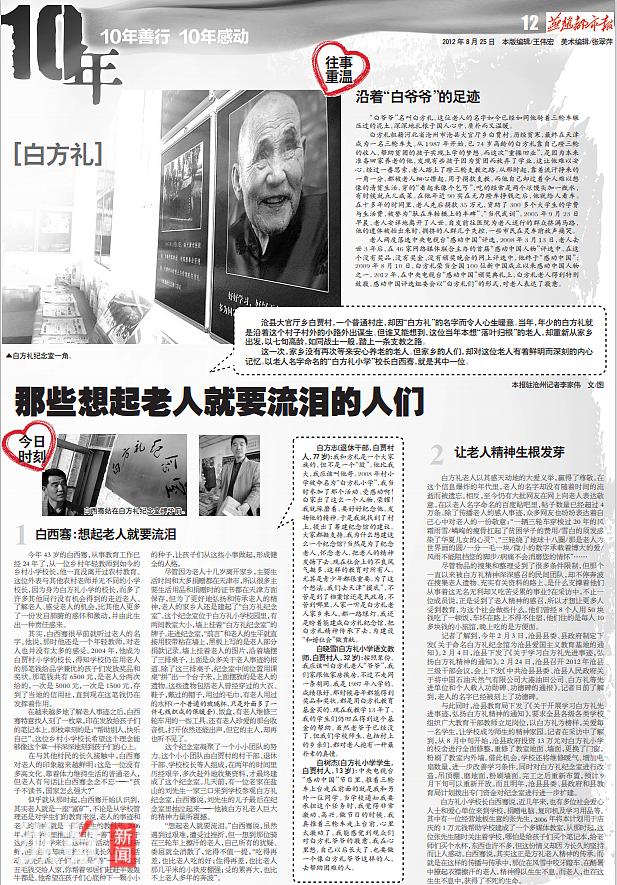 燕趙都市報(bào)2012年8月25日刊發(fā)的白方禮相關(guān)報(bào)道。(來(lái)源/燕趙都市報(bào))