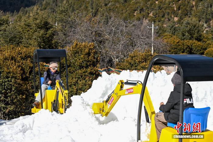 1月29日,小朋友體驗雪地小挖機(jī)。中新社記者 李嘉嫻 攝