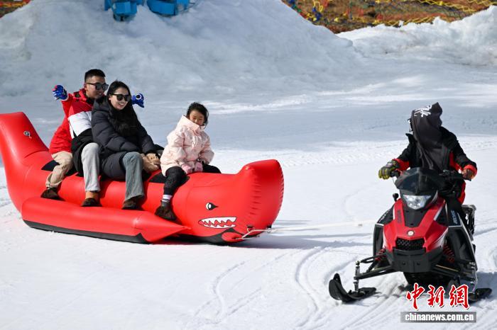 1月29日,游客乘坐“雪地鯊魚船”體驗冰雪魅力。中新社記者 李嘉嫻 攝