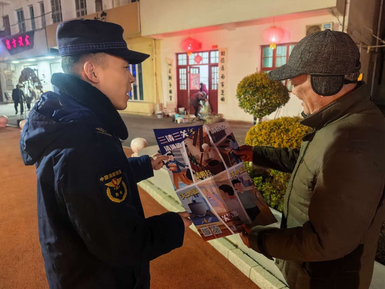 在蔡甸區(qū),巡防組走進(jìn)濱江國(guó)際小區(qū)開(kāi)展消防安全集中夜巡行動(dòng)。巡防組上門(mén)入戶(hù),耐心向居民尤其是老年群體普及消防安全知識(shí),并將消防宣傳海報(bào)張貼在樓道入口、宣傳欄等醒目位置。結(jié)合家庭火災(zāi)特點(diǎn),巡防組用通俗易懂的語(yǔ)言,重點(diǎn)向居民強(qiáng)調(diào)“三清三關(guān)”、電氣線(xiàn)路安全、廚房用火注意事項(xiàng)等內(nèi)容。通過(guò)“接地氣”的交流方式,讓消防安全知識(shí)真正入腦入心,為居民平安過(guò)冬筑牢安全屏障。