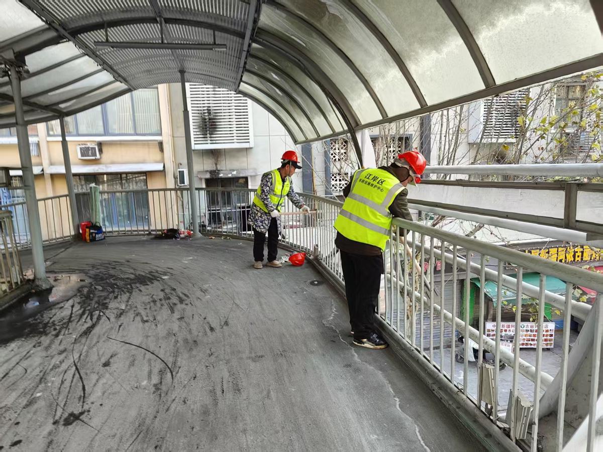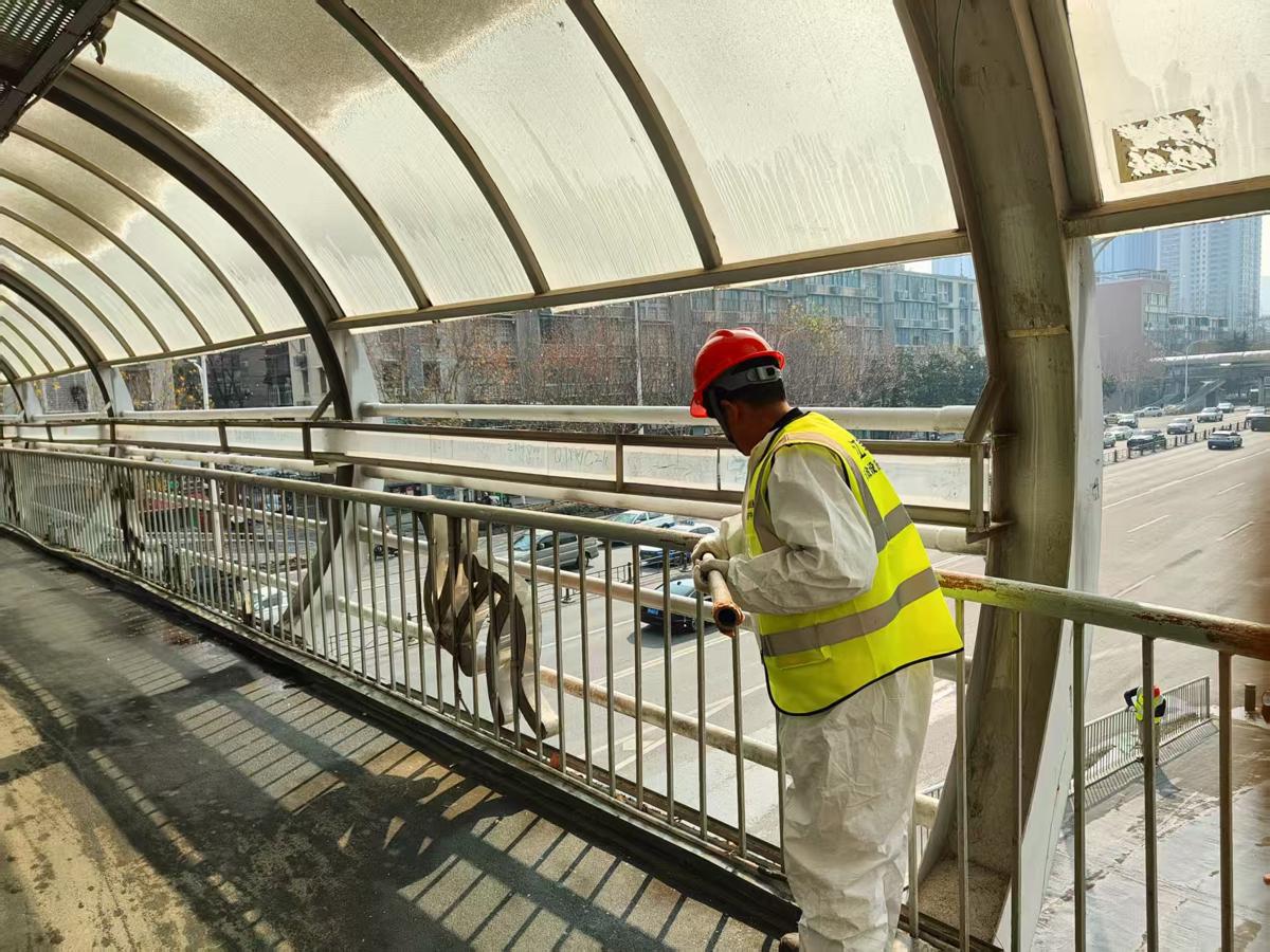 迎新年換新衣,江岸區(qū)19座人行天橋陸續(xù)涂裝換新