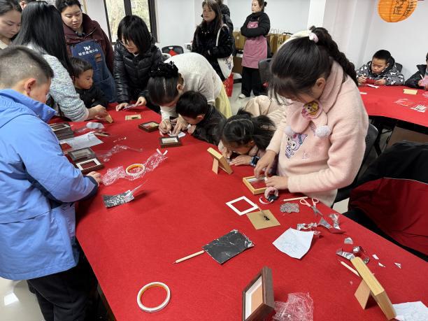 巧手創(chuàng)福區(qū)則吸引了眾多居民尤其是小朋友們的參與,在專業(yè)老師的指導下,大家專注學習鏨刻技藝,親手制作“小馬”、元寶等富有年味的造型,既寄托了美好的新春心愿,也在動手實踐中體驗了傳統(tǒng)手工藝的樂趣。一件件精致的手工作品,成為居民們專屬的新春紀念。