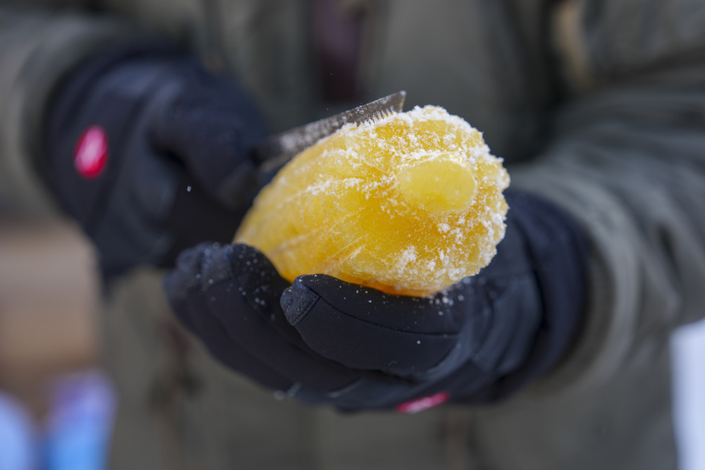 植物彩色冰色澤溫暖柔和,具有良好的保色性,觀賞效果持久穩(wěn)定。待來年春季冰雪消融后,彩色冰將自然降解,實(shí)現(xiàn)“零負(fù)擔(dān)”融入自然生態(tài)系統(tǒng)。