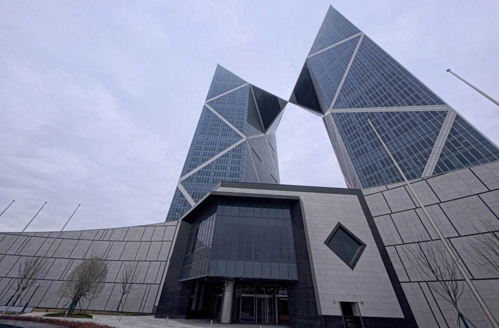 1月29日拍攝的位于滴水湖畔的臨港西島中銀金融中心雙子塔樓。新華社記者 方喆 攝