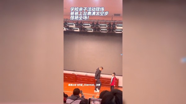 學(xué)校親子活動現(xiàn)場,爸爸上臺表演太空步極目新聞 12-30